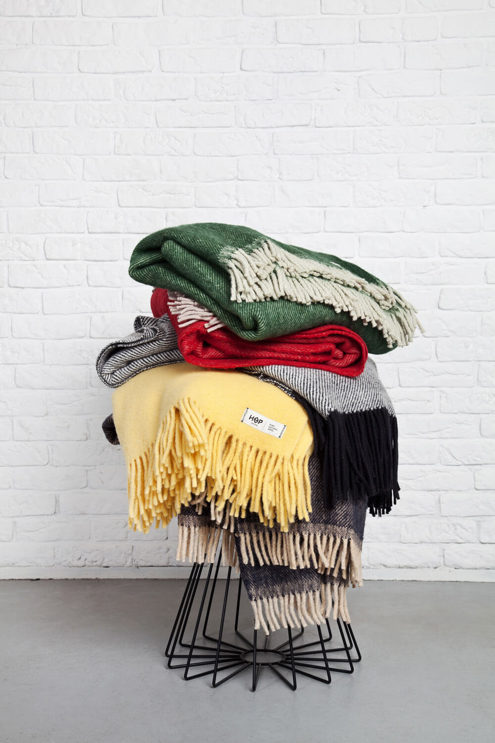 Materiał: 100% wełna owcza z Nowej Zelandii, utkany z włókien o dwóch kolorach, tworząc prążkowany wzór, na który składa się wełna z naturalnym kolorze w kombinacji z kolorem przewodnim.
